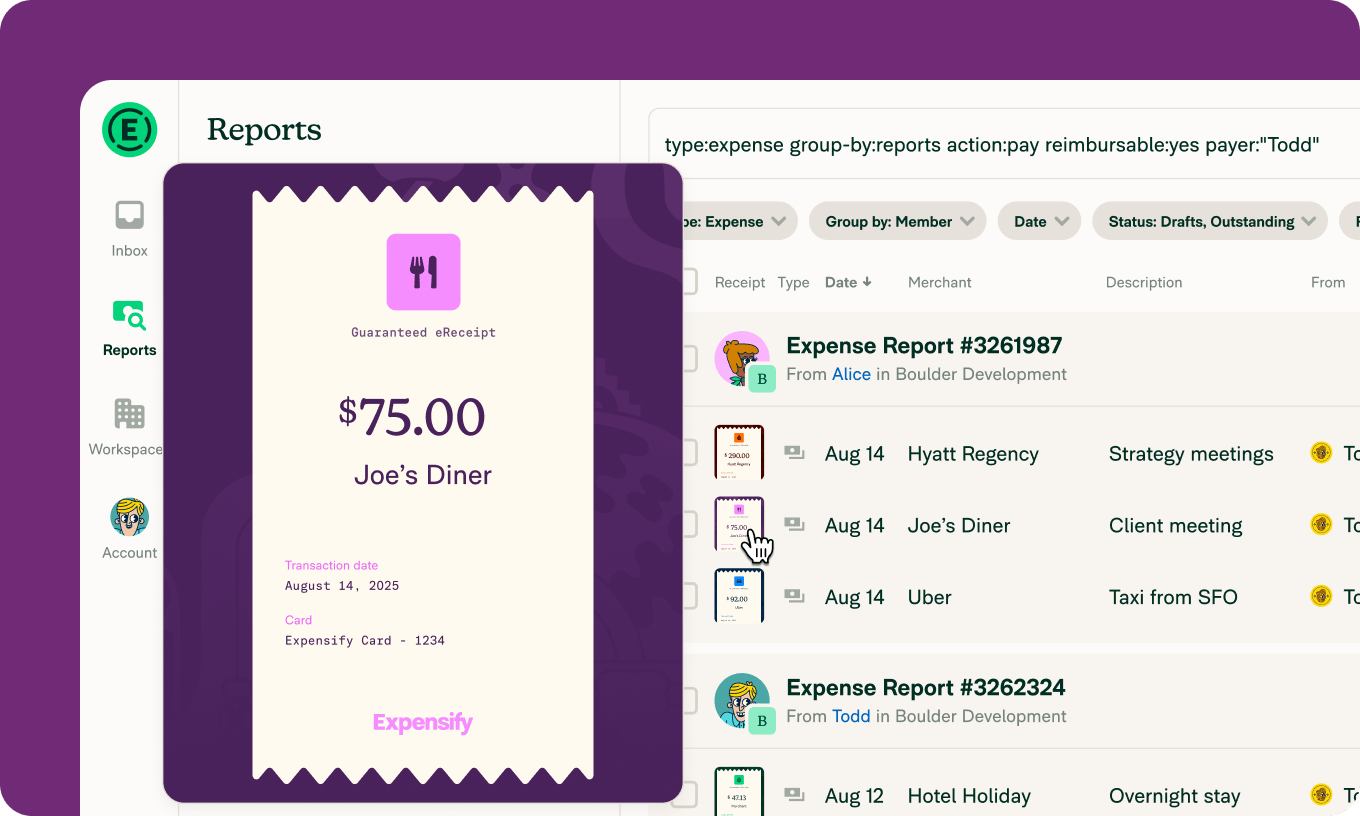 No need to open each receipt. Just hover over an expense to see the attached image instantly and speed up approvals.